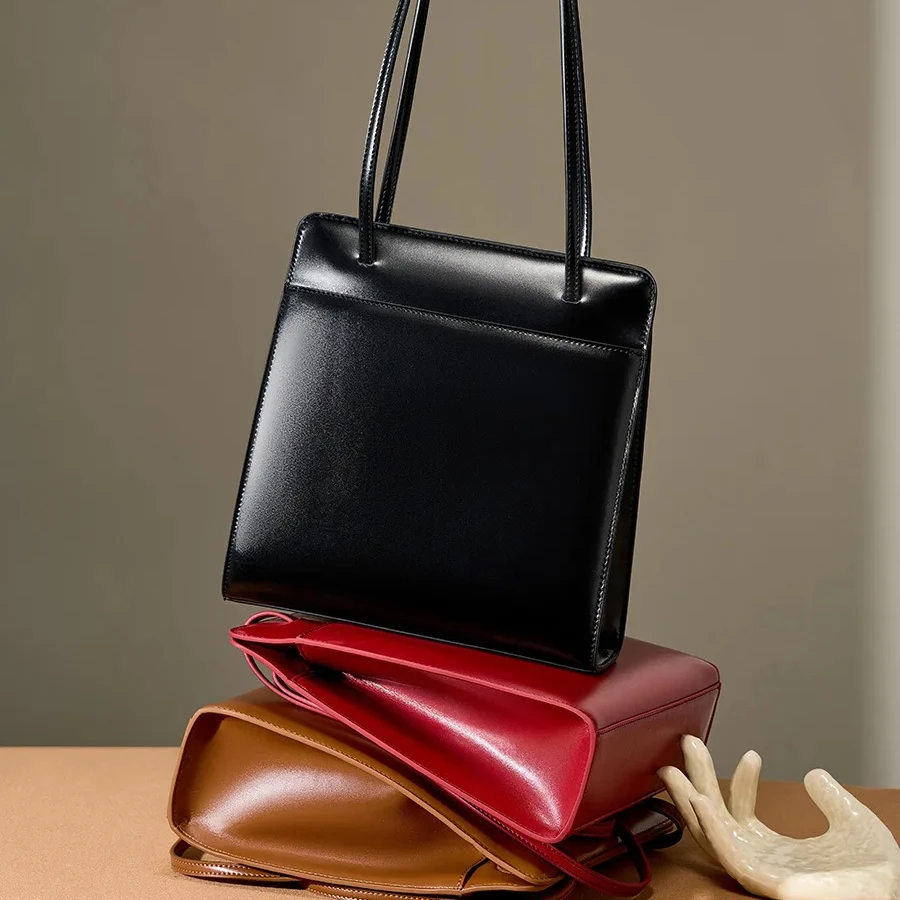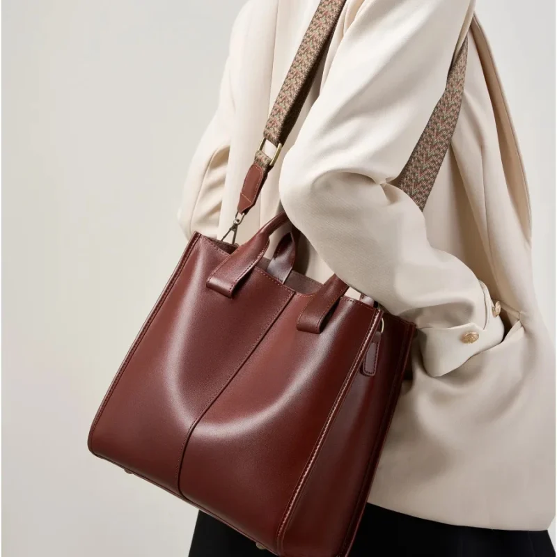 新款到货复古女士风格大容量全粒面真皮托特包女士多功能肩背包 HK$136.00