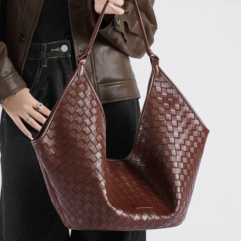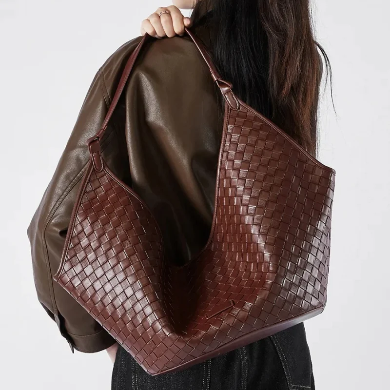 復古時尚真牛皮女士大容量編織設計霍波托特包 HK$278.00