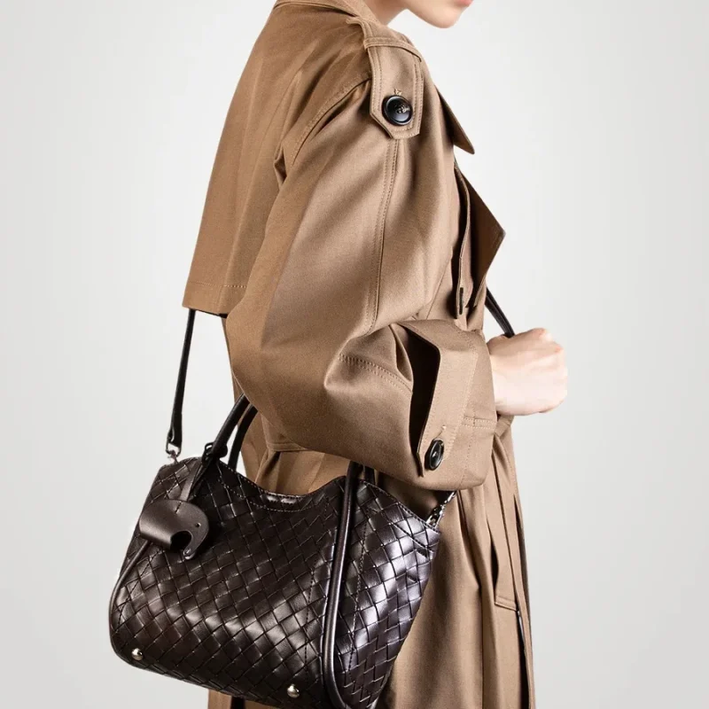 復古時尚真牛皮女士大容量編織設計霍波托特包 HK$278.00